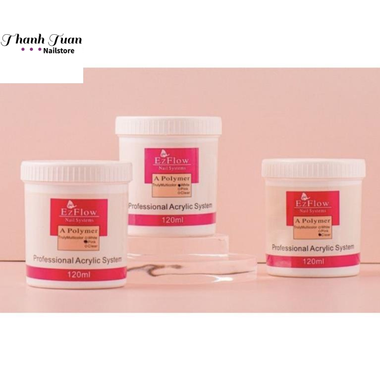 Bột đắp móng Ezflow chính hãng siêu mịn, siêu dẻo, không vón cục - Polymer Nail Powder 3 màu white, pink, clear (120ml) - Ezflow là thương hiệu nổi tiếng trong ngành nail, sản phẩm của hãng được nhiều tiệm nail tin dùng. - Bột đắp móng Ezflow được sử dụng trong kĩ th