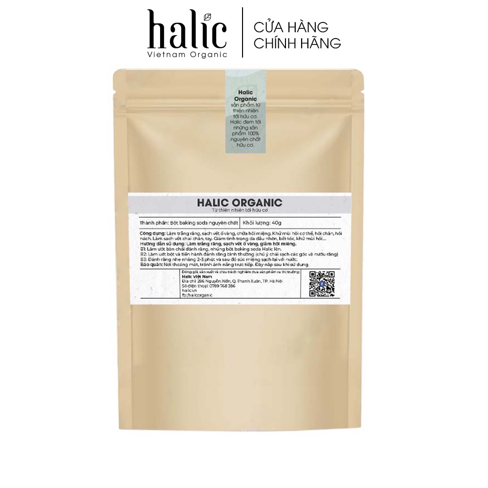 Bột Baking Soda trắng răng Halic Organic 40G dùng đánh răng trắng, loại bỏ vết ố vàng, khử mùi hôi miệng