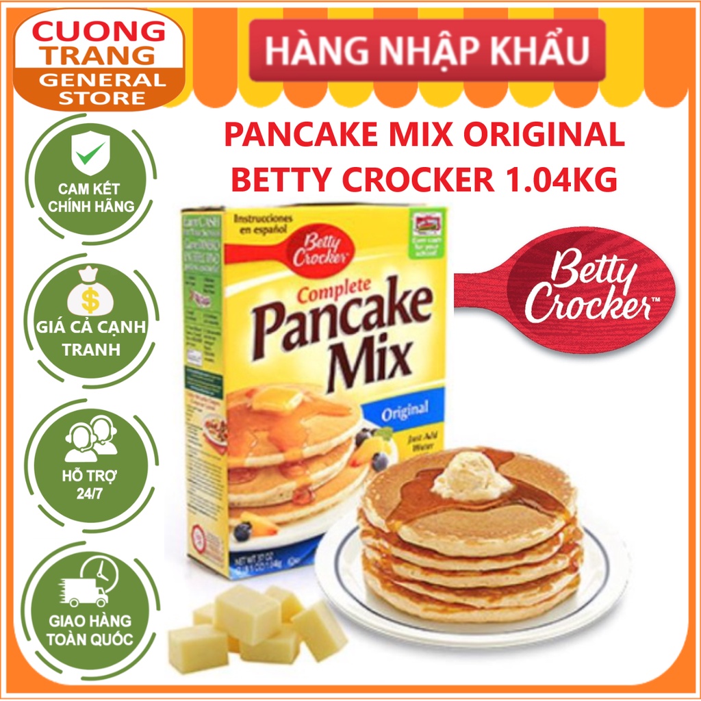 Bột làm bánh pancake truyền thống betty crocker 1.04kg - Bột làm bánh Pancake Mix là loại bột pha chế sẵn rất tiện dụng, giúp bạn tha hồ trổ tài khéo léo, đảm đang tại nhà. - Công thức đặc biệt gồm bột gạo, bột đậu nành, dầu đậu nành... làm cho bánh sau khi chế biến
