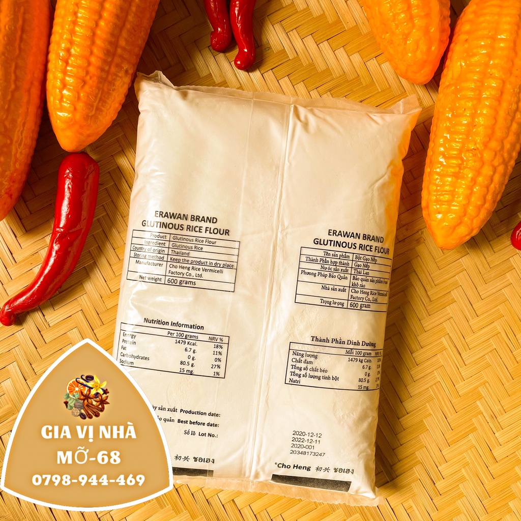 BỘT NẾP THÁI LAM HIỆU CON VOI Thành phần:100% bột nếp nguyên chất Thương hiệu: Ba con voi( Thái Lan) Xuất xứ:Thái Lan Bảo quản:Nơi khô ráo,thoáng mát. HSD:24 tháng GIA VỊ NHÀ MỠ 68