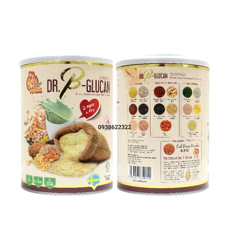 KHỞI ĐẦU NGÀY MỚI TRÀN ĐẦY NĂNG LƯỢNG VỚI BỘT NGŨ CỐC DING DƯỠNG CAO CẤP 22 + DR. B-GLUCAN (DÀNH CHO NGƯỜI ĂN KIÊNG HOẶC TIỂU ĐƯỜNG) - KHÔNG ĐƯỜNG, KHÔNG CHẤT BẢO QUẢN, KHÔNG MÀU NHÂN TẠO. - Bột ngũ cốc dinh dưỡng cao cấp 22 + Dr. B-Glucan sử dụng một lượng lớn bột cám yến mạch chất lượng cao, chứa 20% beta-glucan ngũ cốc nguyên hạt yến mạch chất lượng và các loại hạt khác cung cấp chất xơ, protein, nhiều vitamin và khoáng chất. Nó cũng thích hợp cho những người có vấn đề về cholesterol. Một khẩu phần (25g) của Bột ngũ cốc dinh dưỡng cao cấp 22 + Dr. B-Glucan cung cấp cho bạn 28% nhu cầu ngũ cốc nguyên hạt hàng ngày. => Với Bột ngũ cốc dinh dưỡng cao cấp 22 + Dr. B-Glucan thích hợp cho một bữa ăn sáng bổ dưỡng, khởi đầu ngày mới tràn đầy năng lượng. Nó cũng có thể thay thế món nhẹ trong ngày cho bản thân và cả gia đình. ==> Tất cả những gì bạn cần chỉ trong 1 ly! Với 1 phút 30 giây có ngay thức uống bổ dưỡng cho cả gia đình từ trẻ nhỏ tới người già tràn đầy năng lượng: trong 3 bước đơn giản như sau: 1. Đổ vào ly 2 muống bột (25g), muỗng có sẵn trong hộp 2. Đổ 200 ml nước nóng 60 – 80 độ C vào ly 3. Sau đó khuấy đều là có thể uống được (Có thể thêm đường hoặc sữa tùy khẩu vị mỗi người). - Hỗn hợp gồm: Bột yến mạch 20% (32%), hỗn hợp bột các loại hạt ngũ cốc (25.52%: gạo lứt, tấm ngô, gạo đỏ, lúa mạch, hạnh nhân, hạt sen, hạt lúa mì, hạt kê hữu cơ, mè đen, nếp cẩm, hạt lanh hữu cơ), mầm lúa mì (4%), đạm đậu nành (2%), võ hạt mã - Trọng lượng: 750 g