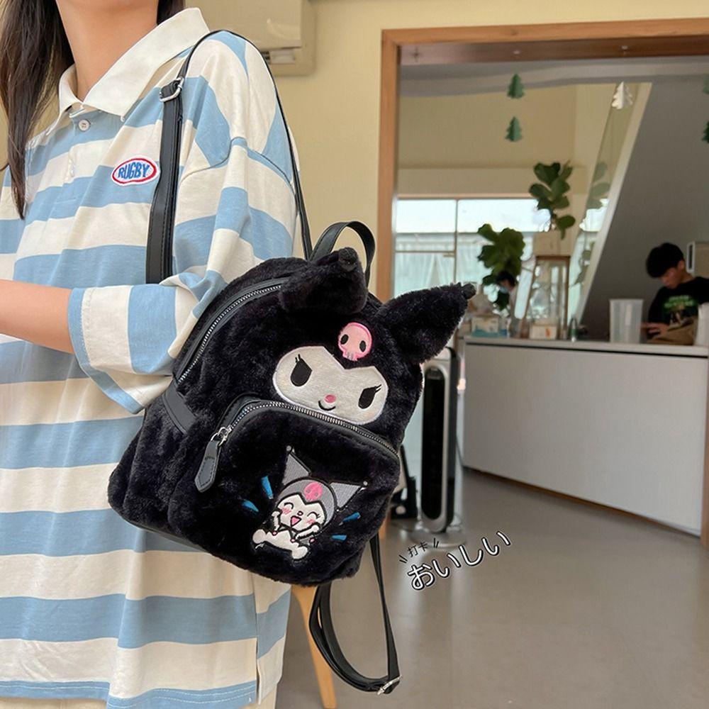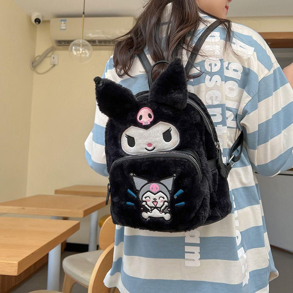Ba Lô Đeo Vai Đi Học Cỡ Lớn Phối Lông Kiểu Hoạt Hình Kuromi Dễ Thương Cho Nữ