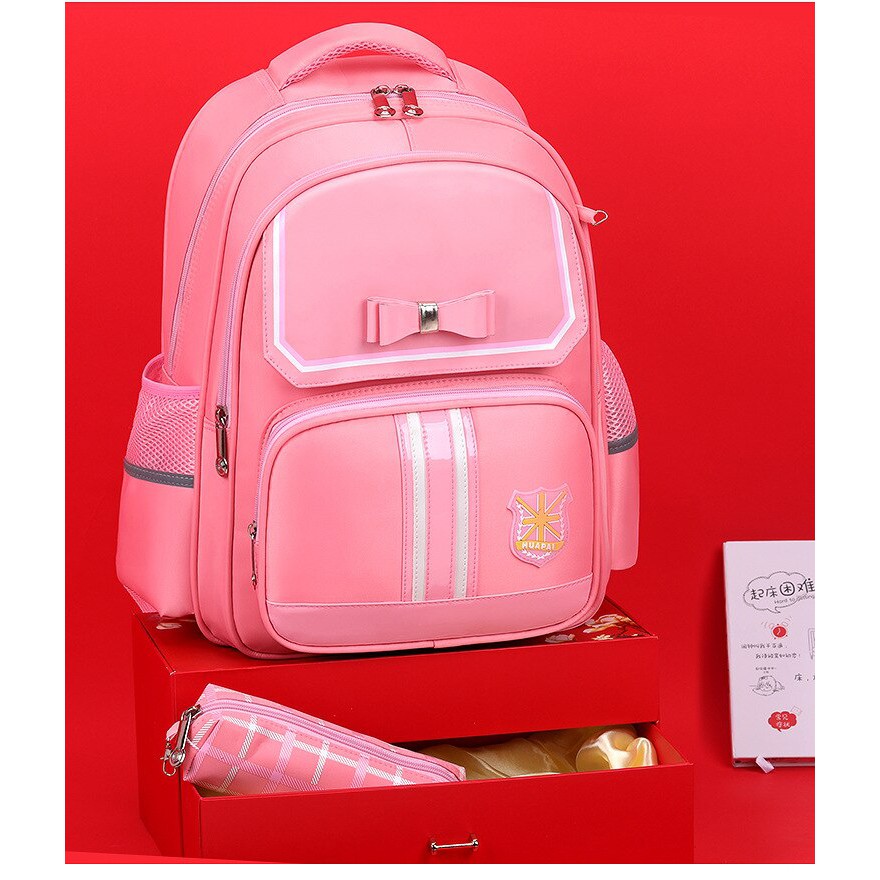 [Dòng mới - Size 42] Ba Lô Đi Học Siêu Nhẹ Chống Thấm Nước Sức Chứa Lớn Phong Cách Hàn - Âu Dành Cho Bé gái cấp 1 cấp 2 * Shop có sẵn 2 màu hồng và Xanh than hồng * Nhiều ngăn rộng rãi , ngăn chính , ngăn phụ , ngăn chưa đồ , ngăn đựng hộp bút , ngăn đựng bình nước bê