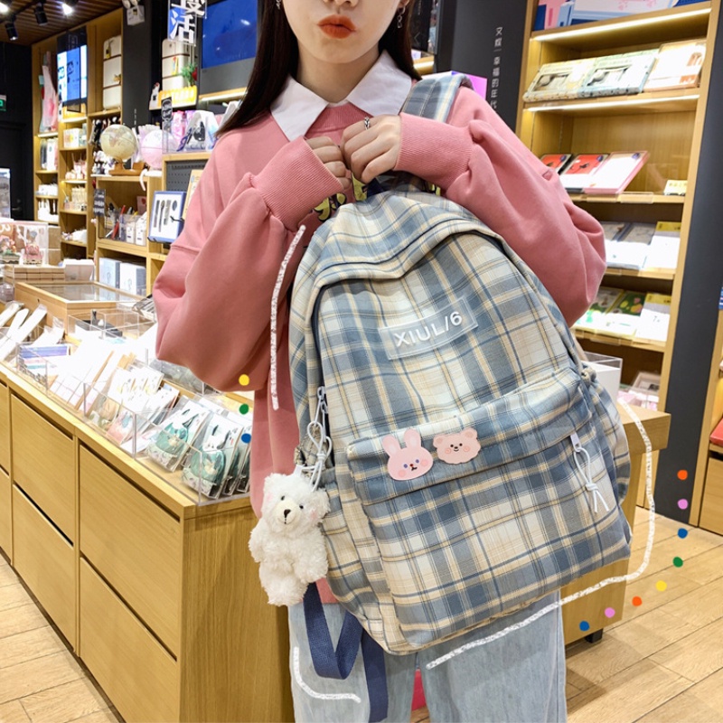 Ba Lô Họa Tiết Ca Rô Phong Cách Hàn Quốc Xinh Xắn Dành Cho Nữ