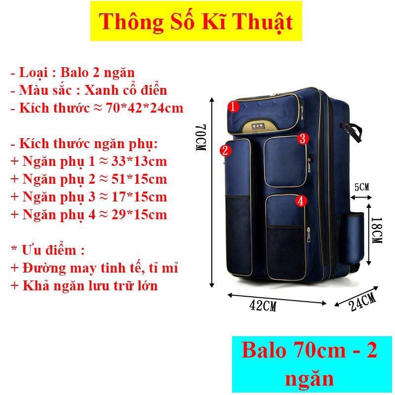 TÚI ĐỰNG CẦN CÂU VÀ PHỤ KIỆN Thông Số Kĩ Thuật : - Chất liệu : Vải Oxford - Màu sắc : Xanh đen - Phan loại : + Balo 70cm 1 ngăn ≈ 70*42*19cm + Balo 70 cm 2 ngăn ≈ 70*42*24...