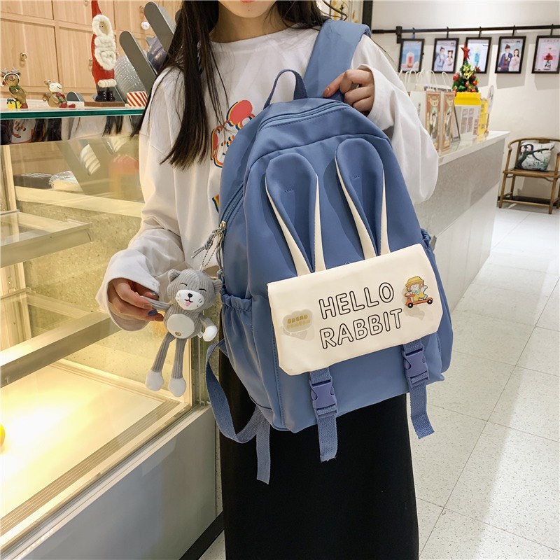 Balo Đi Học Nữ Cute Balo Du Lịch Họa Tiết Tai Thỏ Đáng Yêu Chất Liệu Không Thấm Nước QH0015