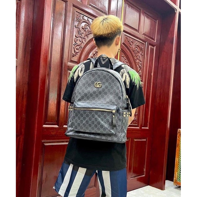 Balo đi học đi du lịch tặng kèm móc gấu size 40 hai màu xám nâu, Balo đinh thời trang đi học M190
