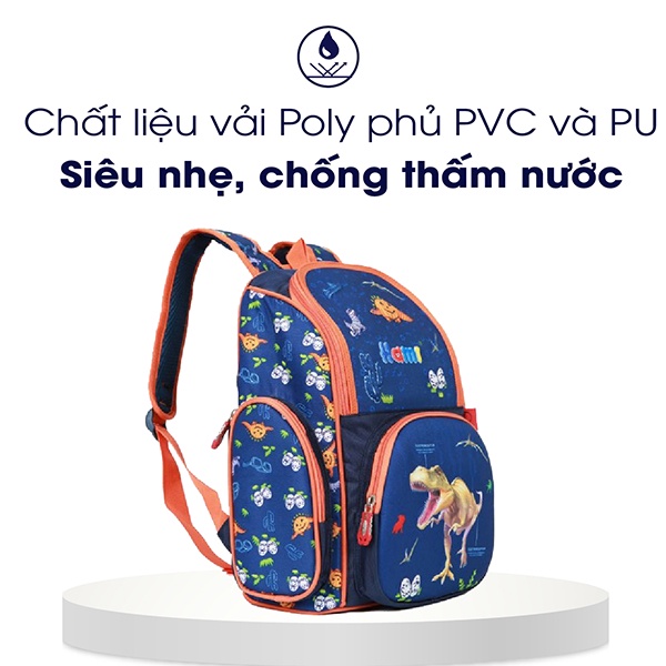 Balo học sinh chống gù Hami 1507 Khủng long, balo đi học cấp 1 cho bé trai siêu nhẹ, chống thấm nước