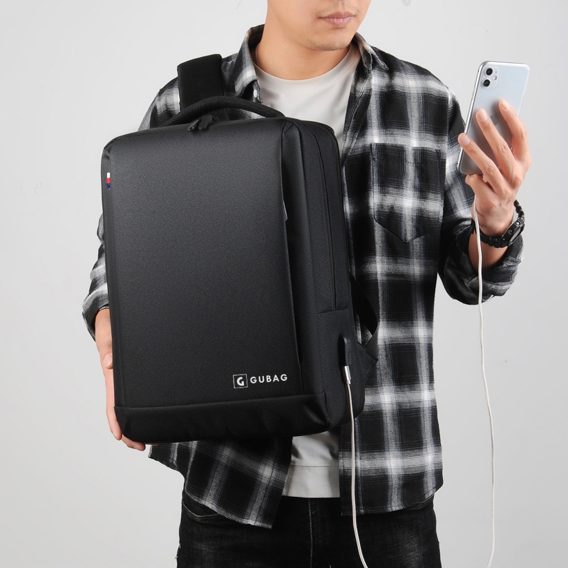 Balo nam cao cấp GuBag, dung tích lớn, cổng sạc Usb ngoài, chống chày xước. Thiết kế nhiều ngăn tiện lợi, ngăn đựng laptop rộng, vừa laptop tới 15,6inch. --------------------------- Thông tin sản phẩm: - Kích thước: 32x45x17 cm. Đựng được laptop 15,6 inch. - Có thể