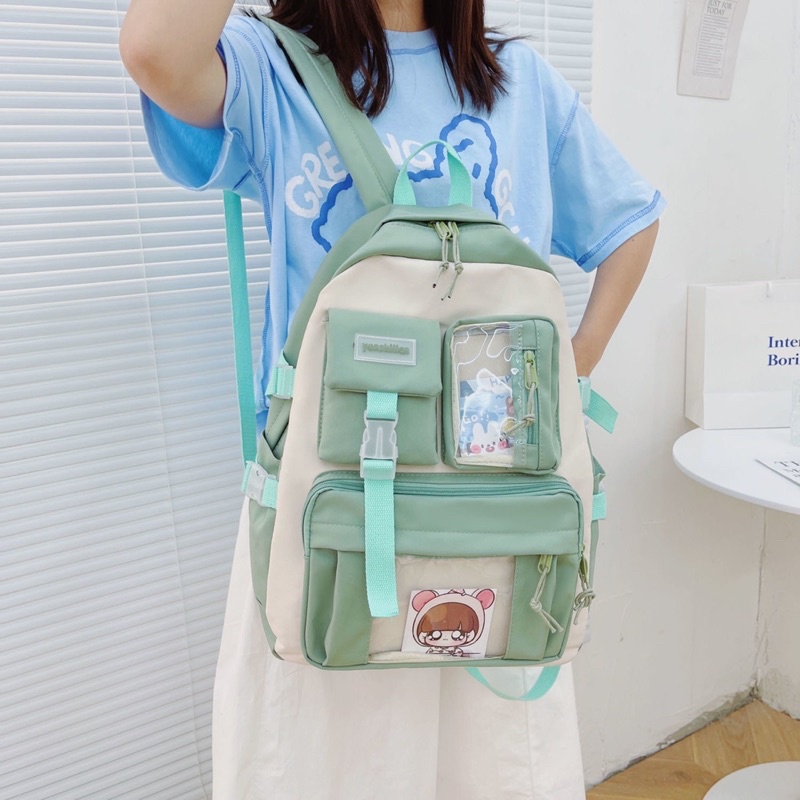 Balo Đi Học Bealux cho Nữ Ulzzang Kèm Gấu, Balo Thời Trang Chất Vải Dù Poly Chống Thấm Nước- 331