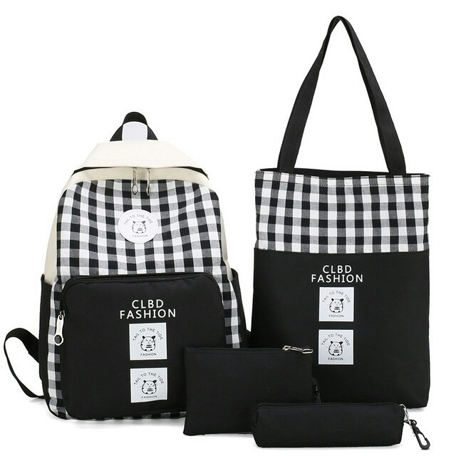 Balo nữ set 4 món style Hàn Quốc đi học laptop hàng Quảng Châu , Balo combo 4 món Canvas