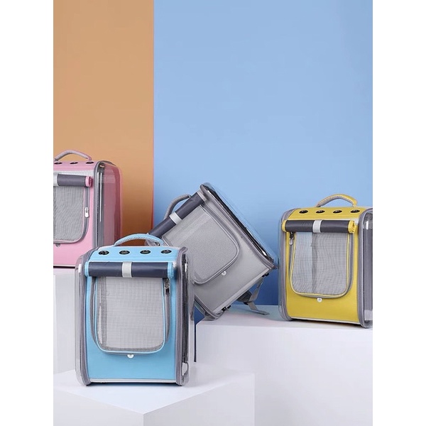 Balo vuông trong suốt cho chó mèo - Kích thước: 30 x 35 x 40cm. - Màu sắc: xám, vàng, hồng. - Phù hợp với tất cả giống chó và mèo dưới 10kg. - Balo đựng chó mèo được dùng khi ra đường, đi chơi rất tiện lợi, an toàn và tạo cảm giác thoải mái cho vật nuôi. - Chất liệu k