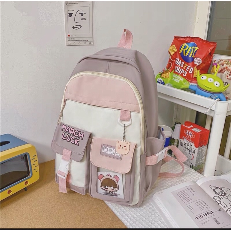 ❤️ Balo thời trang học sinh hàng đẹp 02 lớp Hàn Quốc ❤️ < Tặng kèm 3 sticker, không bao gồm thú bông > ✔️ Size Balo: 40x 30 cm ✔️ Đựng vừa sách vở A4, laptop, ipad, trọng lương lên tới 10 Kg ✔️ Thiết kế dễ thương, mẫu mã cập nhật ✔️ Chất liệu vải sợi tổng hợp dày dặn 2 lớp, trong là lớp lót dai, chống thấm nước, nâng đỡ chống sốc ✔️ Thiết kế quai đeo và khóa zip chắc chắn ✔️ Tặng kèm 3 sticker ngẫu nhiên ✔️ Sản phẩm được dùng đi học, đi chơi, đi du lịch, làm quà tặng cho người thân, bạn bè ✔️ Hàng luôn có sẵn và chọn lọc mẫu mới ✔️ Sản phẩm y hình, bảo hành 06 tháng và nhận đổi trả ❤️ Beautystore mong muốn mang tới cho khách hàng những sản phẩm chất lượng, chắc chắn, bắt mắt, nếu có bất kì điều gì chưa hài lòng, khách hàng vui lòng nhắn tin hoặc gọi điện tới shop để được đổi trả ạ ❤️ . ❤ Xem thêm các mẫu tại shop qua Insta: beautystore.hanoi #phukienthoitrang #ghimcai #pinbalo #ghimbalo #sticker #phukienbalo #trangtribalo #balo #phukientui #phukiendep #phukiendethuong #balohocsinh #tuideocheo