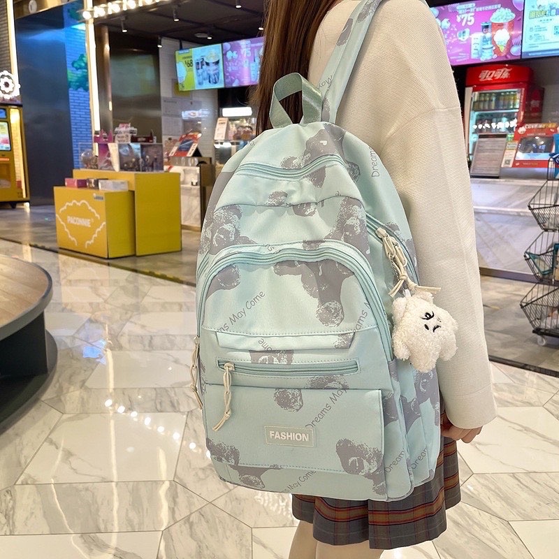 Balo ulzzang Đi Học Đi Chơi Nam Nữ Thời Trang Hàn Quốc Nhiều ngăn In Gấu