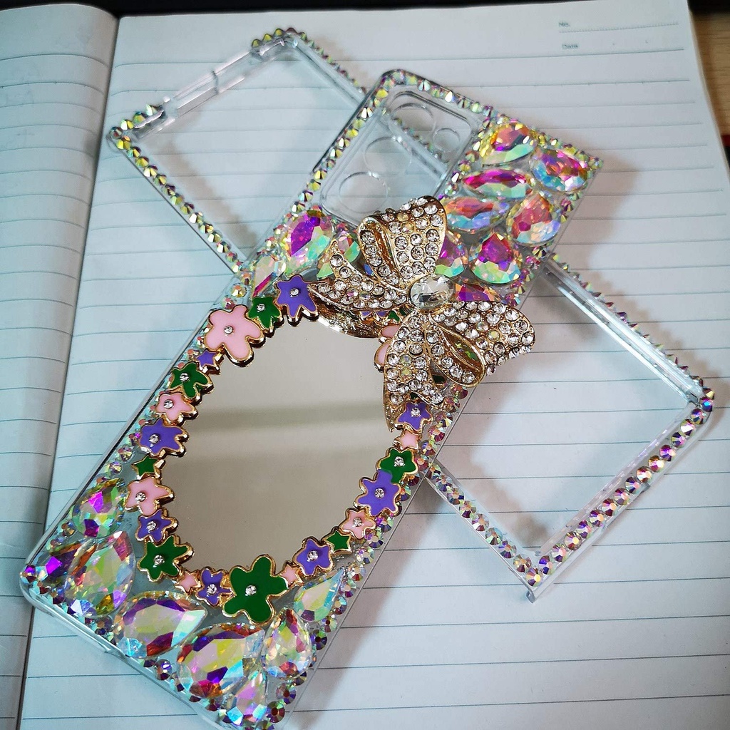 Bao Nắp Gập Chất Giả Da Có Hoa Đính Đá Cho Điện Thoại xiaomi redmi note 12 turbo redmi note 12 Ốp