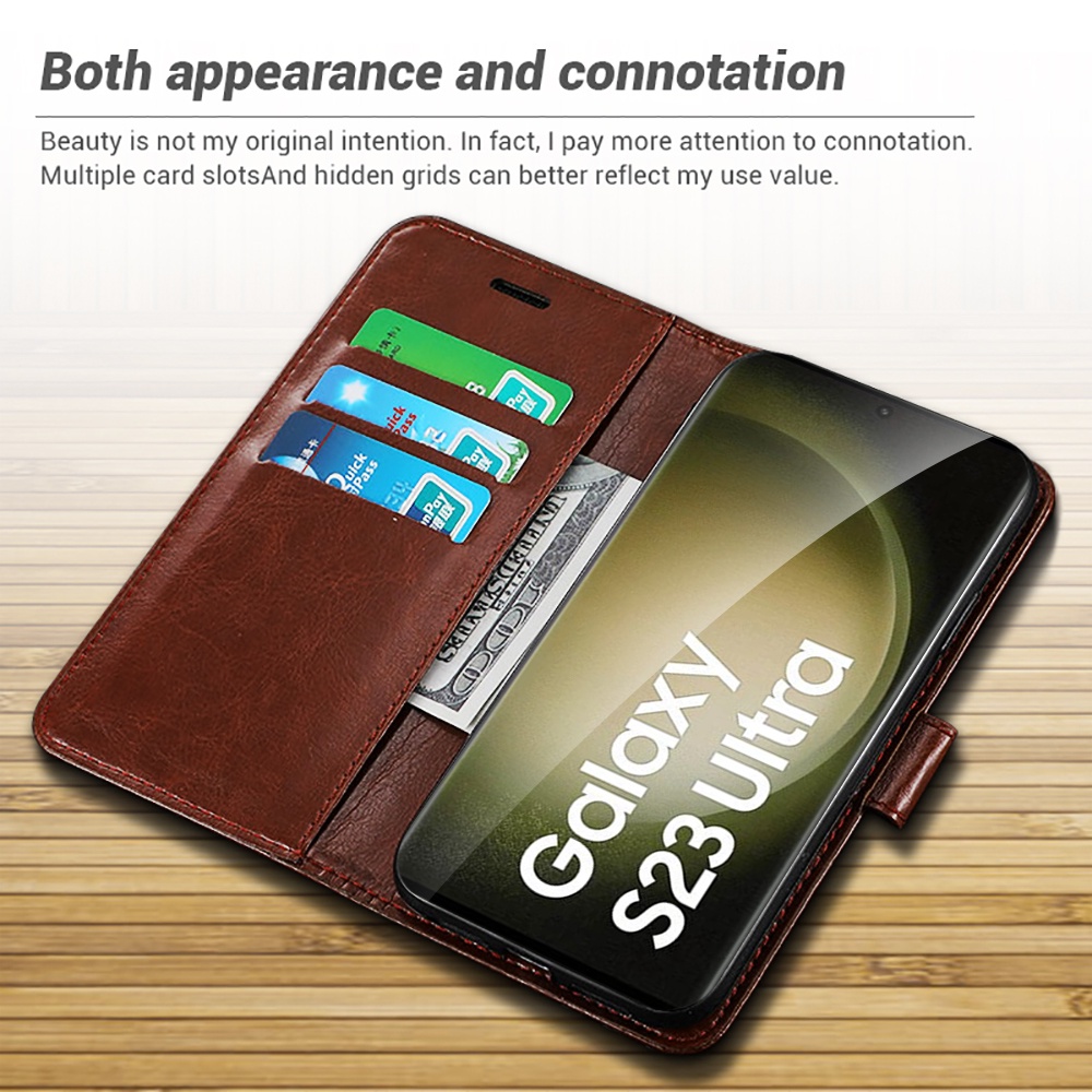 Lưu ý: Nếu đặt hàng 2 chiếc trở lên, bạn có thể được giảm giá 3%!! Điểm bán hàng: [Kích Thước]: Hoàn toàn phù hợp cho dòng samsung galaxy s23 [Chất Liệu]: Làm bằng da ngựa điên PU cao cấp chất lượng cao [Màu]: Đen, nhạt, xanh dương, đỏ, đỏ hồng, nâu, xanh như hình ảnh