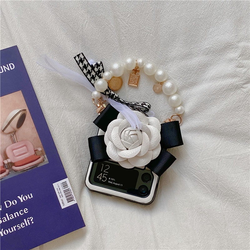 Bao Da Điện Thoại Họa Tiết Hoa Trà Đính Ngọc Trai Sang Trọng Cho samsung galaxy z flip 4g 5 4 3 zflip5 zflip4 5g Ốp