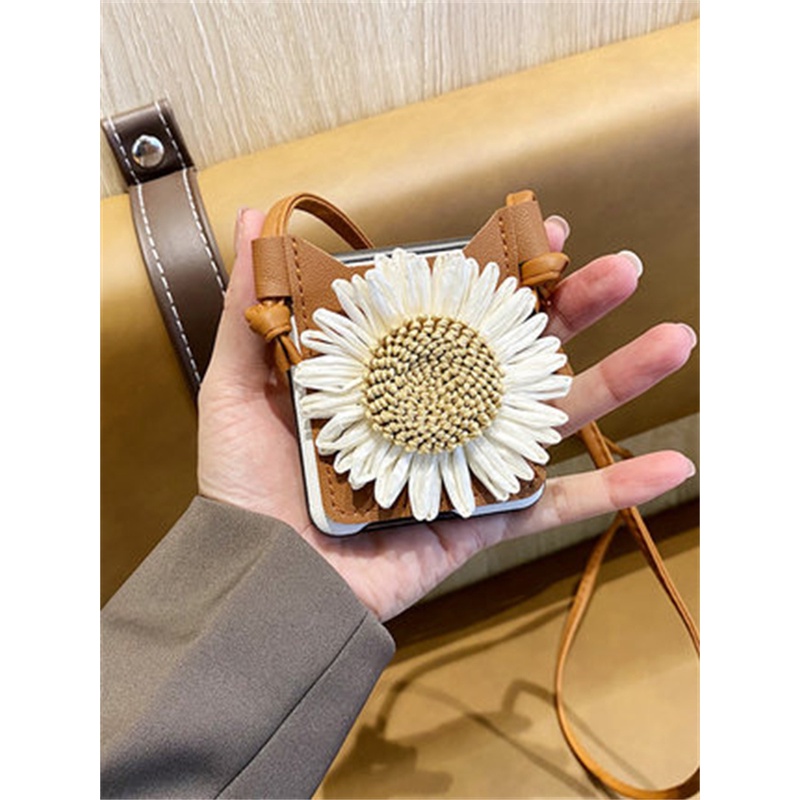 Bao Da Điện Thoại Nắp Gập Có Ngăn Đựng Thẻ Họa Tiết Hoa Hướng Dương 3d Thời Trang Dành Cho samsung galaxy z flip 5 4 3 flip4 flip3 5g Ốp
