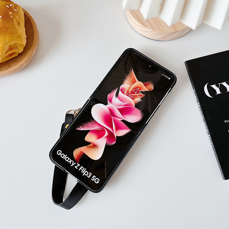 Bao Da Điện Thoại Nắp Gập Họa Tiết Hoa / Gấu Kèm Dây Đeo Cho samsung galaxy z flip 4 3 flip4 flip3 5g f7110 Ốp