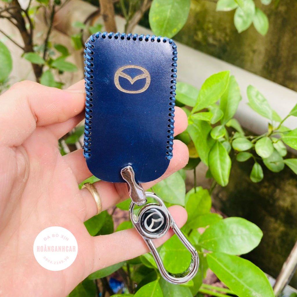 Bao da móc khoá bọc ốp chìa khoá xe ô tô Mazda 3, CX 3, CX 30 2020 - 2022, da bò, nhiều màu khâu thủ công