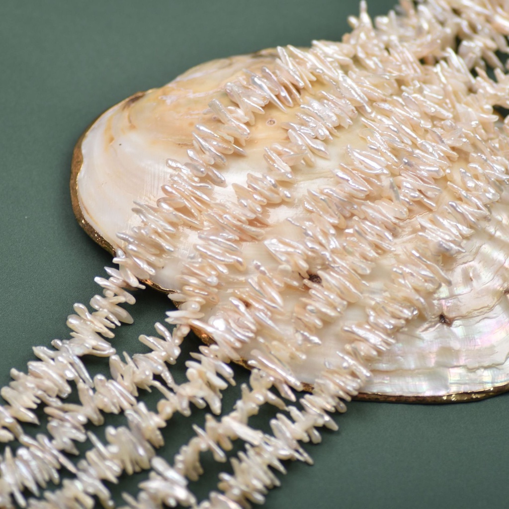 Baroque Tăm Xỉa Răng Hạt Ngọc Trai Hình Cánh Hoa Xếp Chồng Lỗ Trung Bình Ngắn Màu Trắng Nước Ngọt