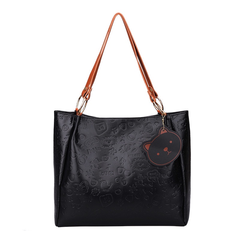 Beikeyang Túi tote Đeo Vai Màu Trơn Họa Tiết Gấu Hoạt Hình Cao Cấp Thời Trang Hàn Quốc Cho Nữ