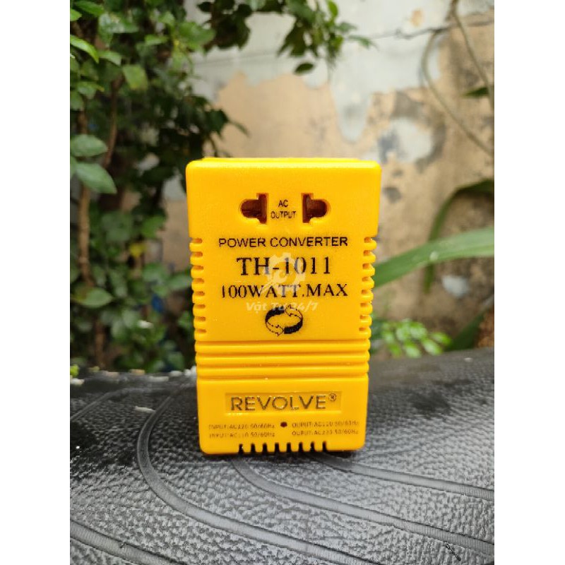 Biến áp - Biến điện - Adaptor REVOLVE Từ 220V Xuống 110V và ngược lại Từ 110V lên 220V ¤ Công xuất REVOLVE: TH 1010 = 80w / TH1011=100w. Thích hợp cho các thiết bị điện công xuất thấp(sử dụng được cho đèn, quạt, Ti-Vi ,Laptop,máy nghe nhạc có công xuất Từ 80w - 10