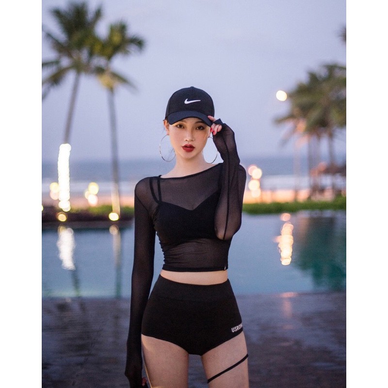 Bikini/bộ bơi 2 mảnh năng động kèm áo lưới style đi biển cá tính hè 2023 M03