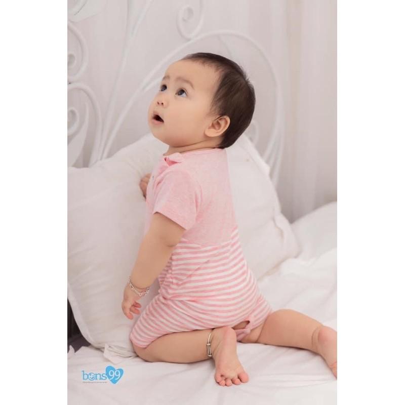 Bộ body chíp cộc tay vải sợi tre phối sọc Arich, sơ sinh đến 18 tháng
