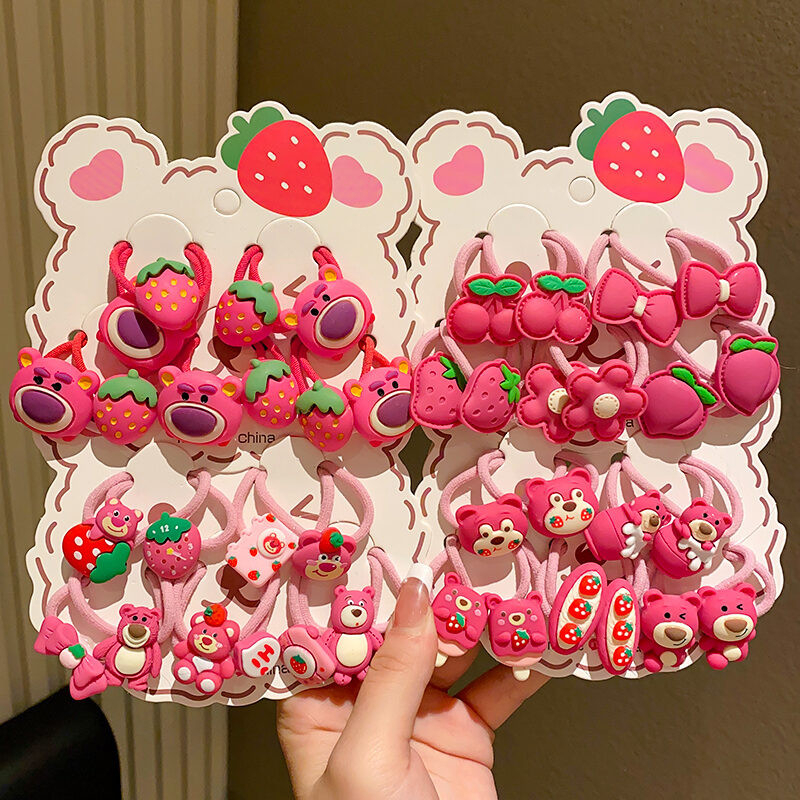 ⚡Disney Dây Buộc Tóc Cao Su Hình Gấu Hồng Dâu Tây Kiểu Nhật Bản Dễ Thương Cho Bé Gái