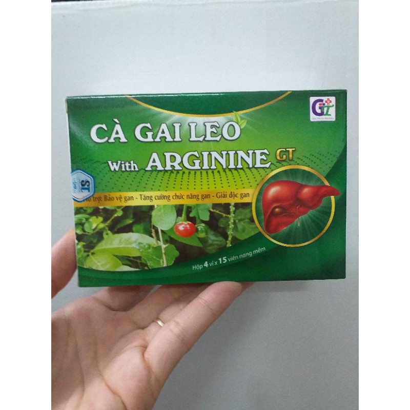 BỔ GAN CÀ GAI LEO WITH ARGININE GT *Công dụng: - Hỗ trợ giải độc gan,hạ men gan,giúp tăng cường chức năng gan trong các trường hợp viêm gan, xơ gan, - Hỗ trợ giảm các nguy cơ tổn thương gan do ăn uống ,hóa chất độc hại, sử dụng thuốc tây nhiều gây hại cho gan. *Đố