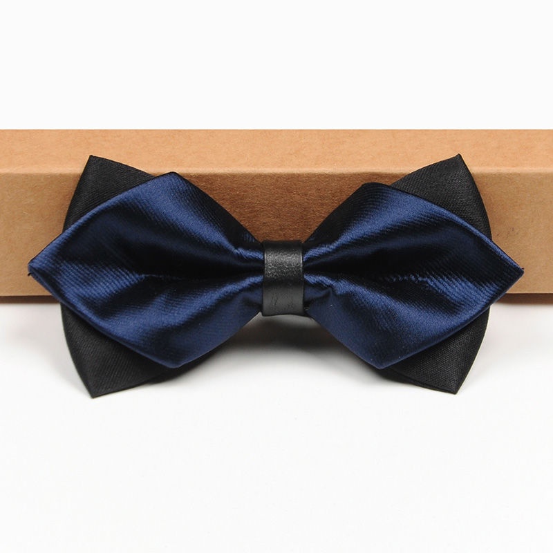 Cà Vạt Nơ Mũi Nhọn Hai Lớp Màu Đen Phong Cách Hàn Quốc Cho Chú Rể