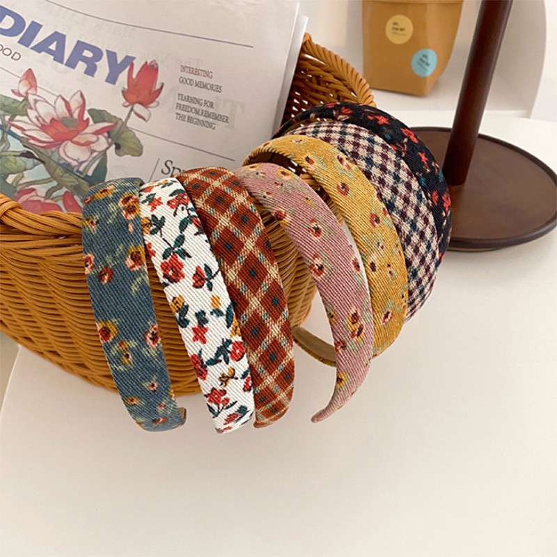 Băng Đô Cài Tóc Bản Rộng Bằng Vải Họa Tiết Sọc Caro Màu Kẹo Phong Cách Cổ Điển Thời Trang Cho Nữ