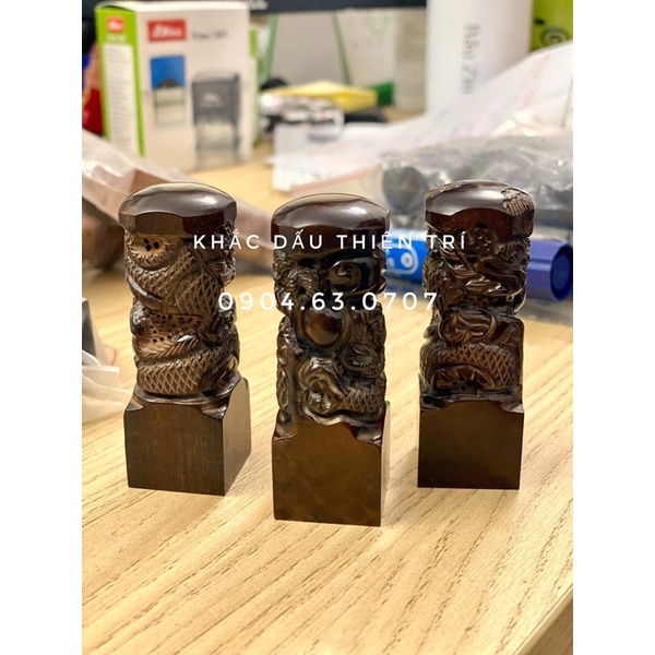 ✅ Con dấu cá nhân làm từ nhựa tổng hợp giả gỗ / đá . Trên dấu có hình các linh vật tạo nét riêng độc đáo , có tính phong thủy cao . Các con dấu có 2 kích thước 2cm hoặc 2.4 cm tuỳ từng mẫu. ✅ Giá sản phẩm chưa bao gồm mực và hộp đựng. Khách hàng có thể lựa chọn mu