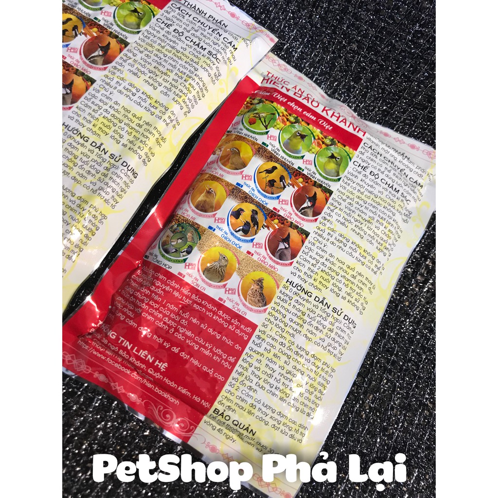 Tên thương hiệu: Hiển Bảo Khánh Dùng cho chim: Tổng Hợp Xuất xứ: Việt Nam Khối Lượng Tịnh: 200g 💥💥💥Mua 10 gói có giá cực ưu đãi.💥💥💥 Đôi lời của Hiển Bảo Khánh: -Thức Ăn Chim Cảnh Hiển Bảo Khánh được sản xuất từ nguồn nguyên liệu tươi, sạch, và không sử dụng chất