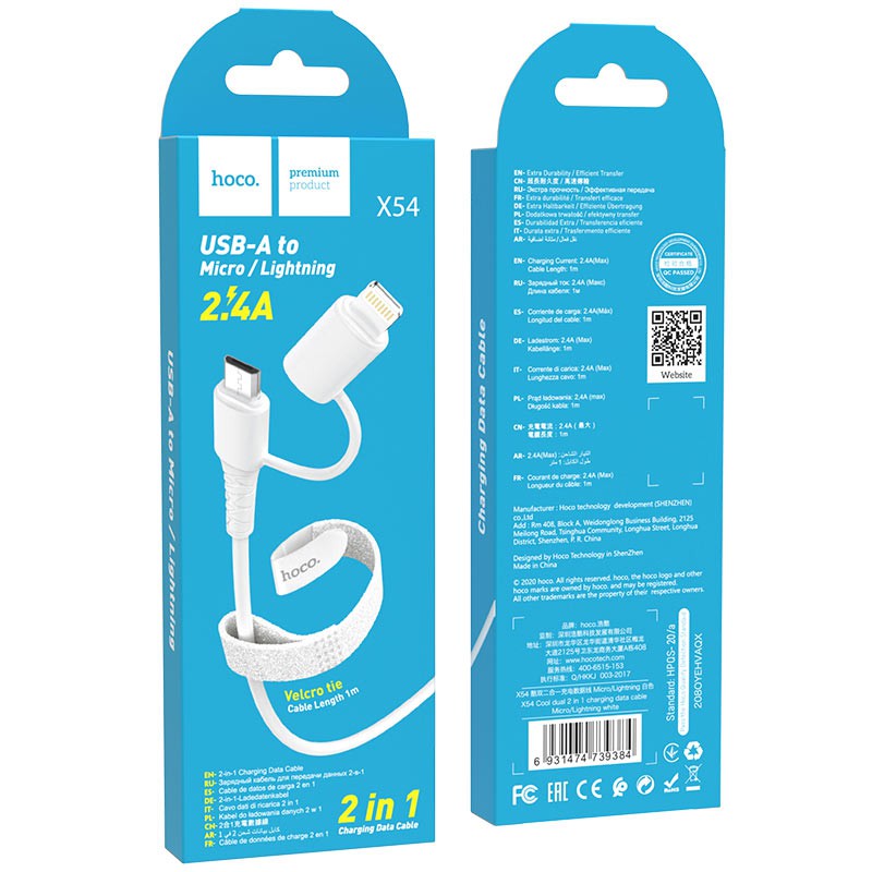 Cáp 2 đầu 2 in 1 HOCO X54 Micro/Type C và Micro/Dành cho IPIP7 8 Plus X Xs 11 12 Pro Max Samsung