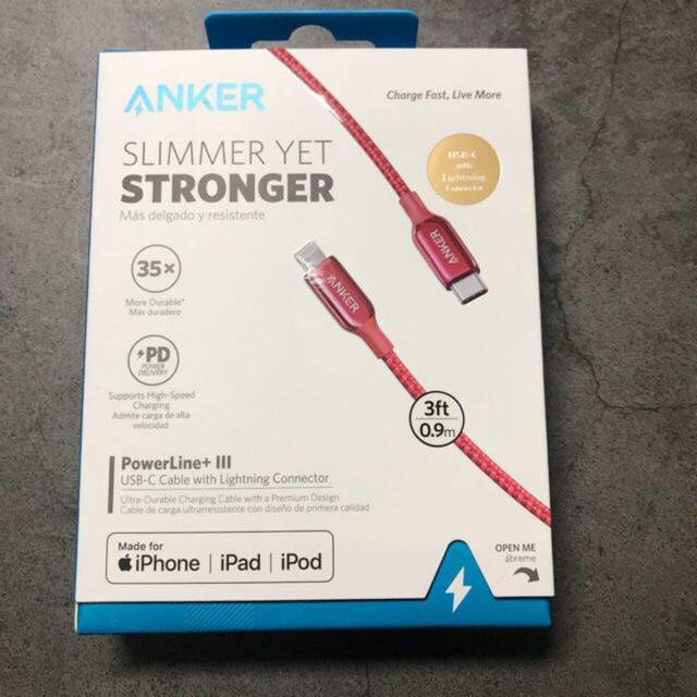 Cáp Chân USB TYPE C- LIGHTNING ANKER 8842 Hàng chính hãng thương hiệu ANKER USA Là sợi cáp mềm mại hơn rất nhiều thế hệ cũ Đầu Type C cắm khít hơn Cáp Dù Anker PowerLine+ 3 UsbC To Lightning Thế hệ 3 - Model: A8842 - 8843 Cáp dù Anker Powerline III 3 + Usb C to Lighting 🔶Cáp thế hệ 3 mới nhất của Anker với nhiều nâng cấp đáng giá ✅ Nâng cấp độ bền số lượt gập lên tới 35000 lần Cực bền ✅Đầu cáp làm bằng thép không rỉ bo cong ✅ Xếp lại lõi cáp giúp cáp nhỏ hơn và mềm dẻo hơn thế hệ cũ ✅ Chuẩn MFI Apple Chip C94 mới nhất ✅ Đầu cáp màu bạc không bị đen chân số 4 ✅ Sạc nhanh 18W cho Iphone 30 phút 50% Pin Anker A8842: dài 0,9 m giá 370 k Anker A8843: dàu 1,8 m giá 420 k Sản phẩm gồm : Cáp + Túi da List sản phẩm hỗ trợ: iPhone 8, 8 Plus, X, XS, XR, XS Max, iPad Pro (10,5 inch), iPad Pro (12,9 inch) thế hệ 1, iPad Pro (12,9 inch) thế hệ 2, AirPods, AirPods có Vỏ sạc không dây và AirPods Pro Màu sắc: đen, đỏ Bảo hành 18 tháng ( khách vui lòng giữ lại hộp để bảo hành) 🕳🕳🕳🕳 ☎️ 0988099896/034.670.6666