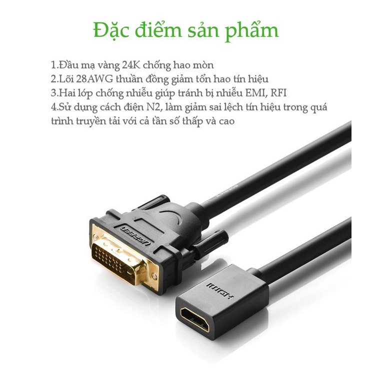 Cáp chuyển đổi DVI 24+1 to HDMI Ugreen 20118 - Hàng Chính Hãng