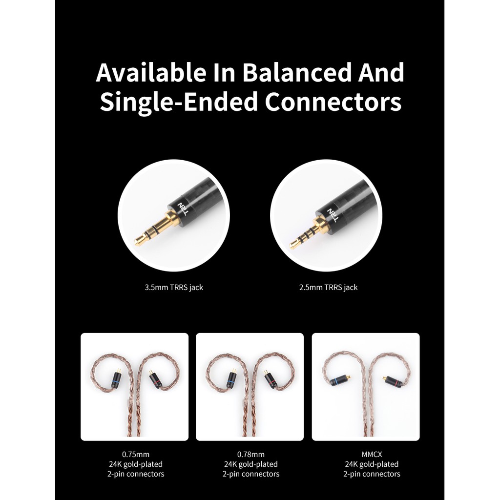 Thời gian giao hàng dự kiến cho sản phẩm này là từ 7-9 ngày Thông tin sản phẩm: 1 Tên sản phẩm: Cáp mạ bạc TRN 16 lõi 2 Màu sắc: Xám / nâu / đen 3 Chất liệu: Đồng 16 lõi độ tinh khiết cao 4 loại giắc cắm: ổ cắm thẳng 3,5 mm / 2,5mm 5 Giao diện: chấu MMCX /