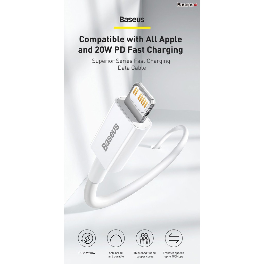 Cáp sạc nhanh 20w cho iphone ipad hỗ trợ truyền dữ liệu 1 mét chính hãng baseus