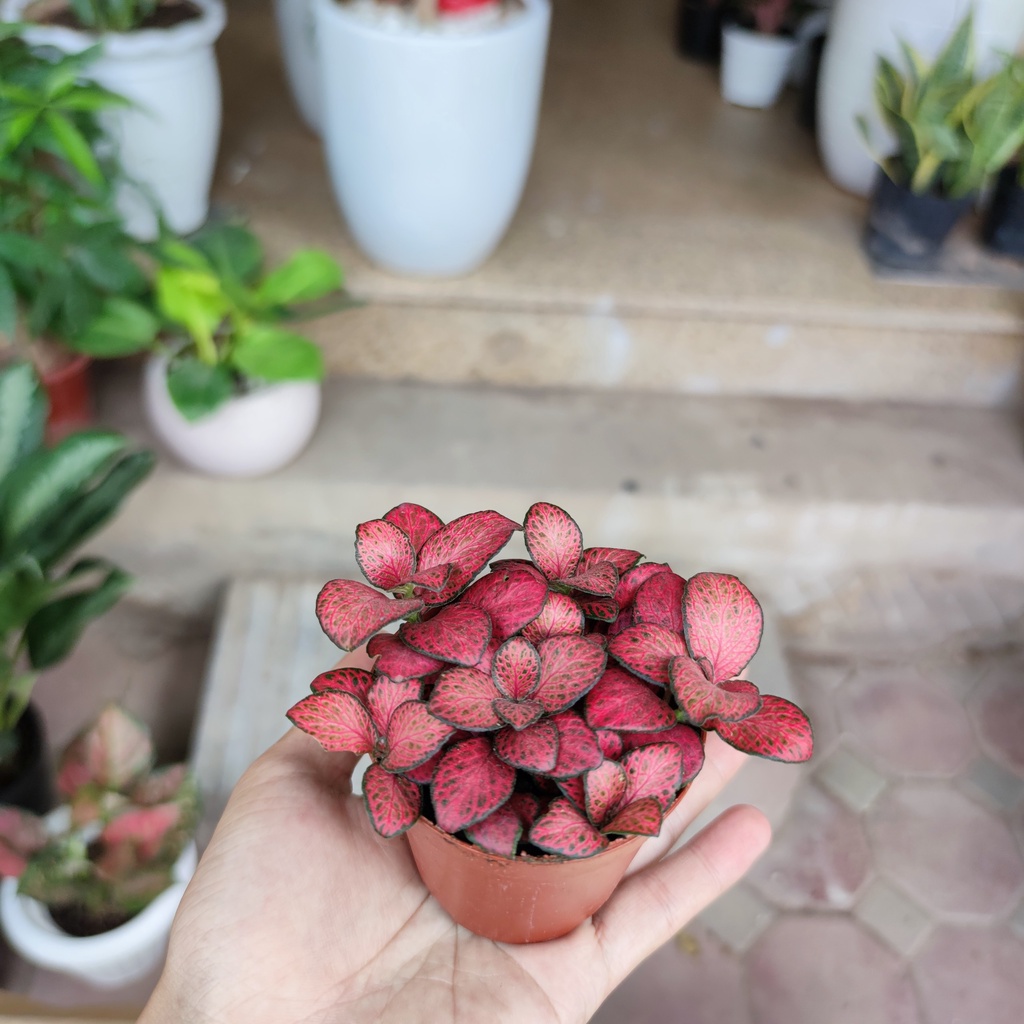MÔ TẢ SẢN PHẨM:Cây cẩm nhung nhiều màu cực xinh để bàn,cây may mắn để bàn nhiều màu(Cây cẩm nhung Fittonia) 🌱Kích thước: 10x13 cm Cây có nhiều màu: xanh, hồng đậm và hồng nhạt. Là loại cây ưa nước và phù hợp để trồng trong nhà và lá cây có chứa chlorophyll giúp hút t