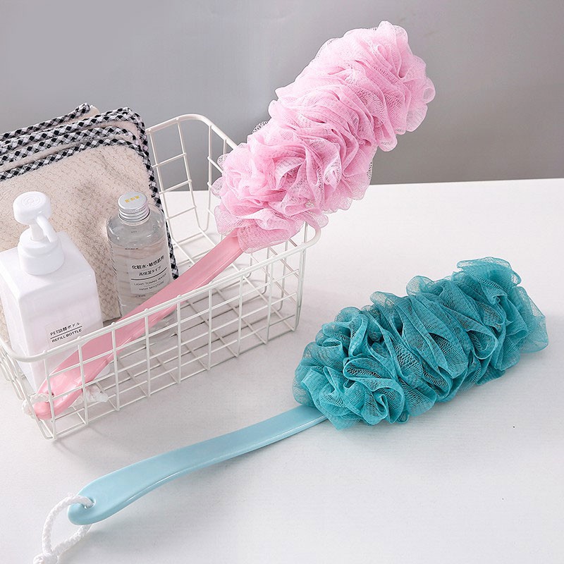 Cây cọ lưng tắm bông tắm cán dài, Bông tắm cọ lưng tẩy tế bào chết có cán dài tiện lợi B0191