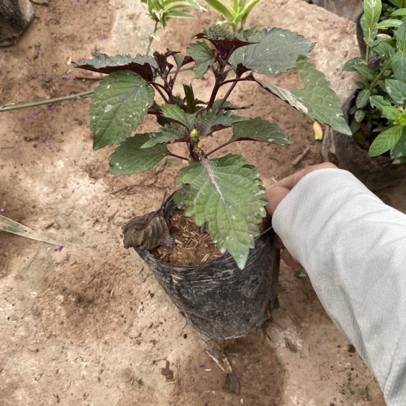 Cây rau tía tô trồv trong bịch đen được dùng làm gia vị trong các món ăn