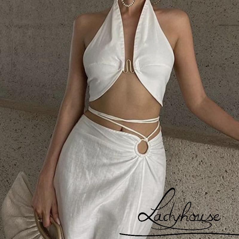 DUOHANZI Kiểu Pháp Cổ Áo Polo Váy Có Dây Kéo Nữ Ngắn Tay Chân Váy Dài