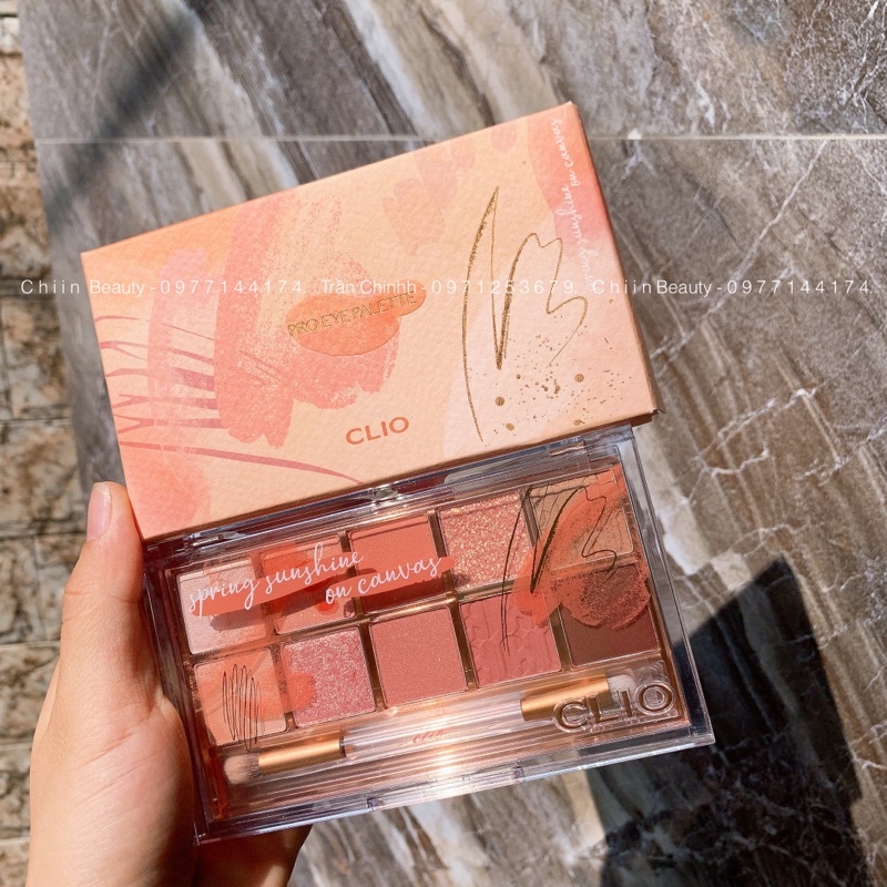 Có kèm cọ mắt - Bảng phấn mắt CLIO màu số 15 Eye Palette tone Spring Sunshine on Canvas cam hồng đào