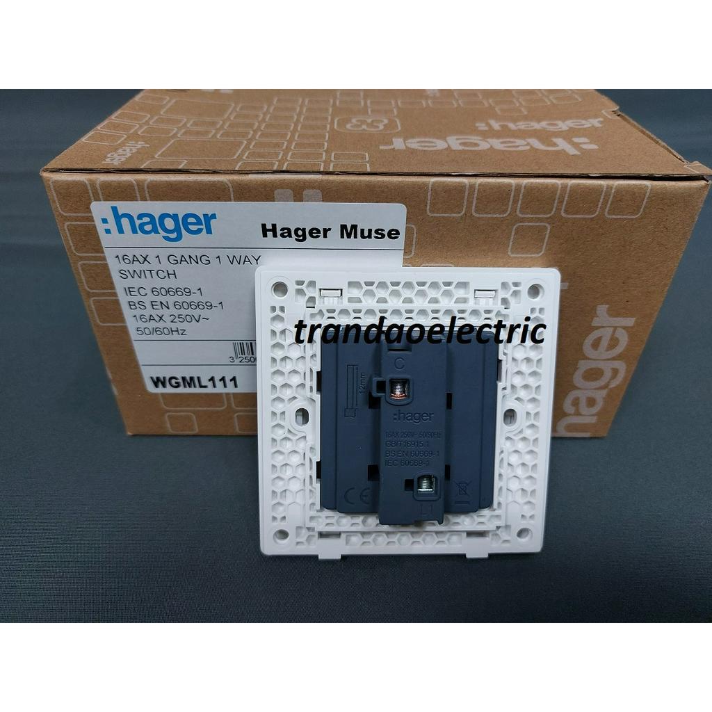 Công tắc đơn 1 / 2 chiều 16A màu trắng Hager - WGML111 / WGML112