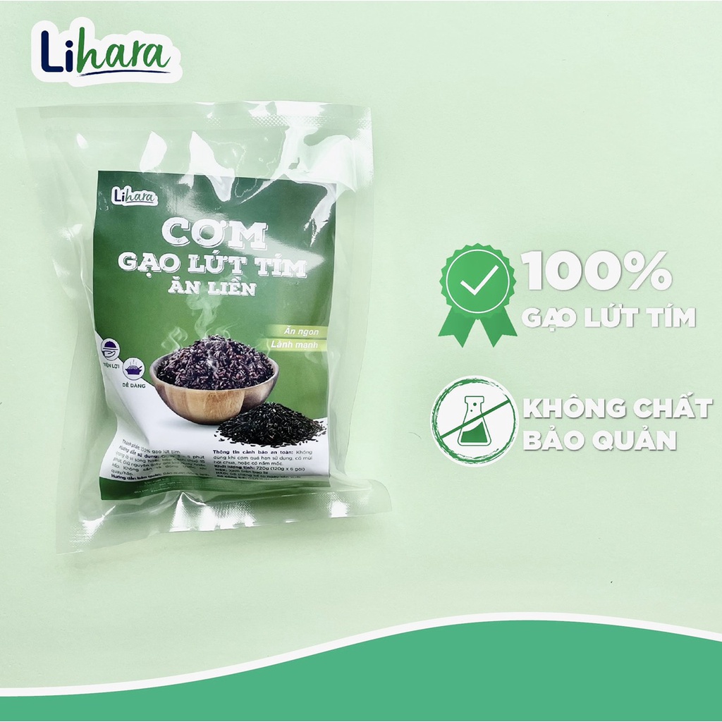 Cơm gạo lứt ăn liền LIHARA nguyên liệu gạo lứt tím dẻo mềm thơm ngon ăn liền sau 3 phút với Microwave. THÔNG TIN CHUNG VỀ SẢN PHẨM CƠM GẠO LỨT ĂN LIỀN - Sản phẩm: Cơm gạo lứt tím ăn liền Lihara - Xuất xứ: Công ty TNHH Liliha - Khối lượng: 720g/ túi (G