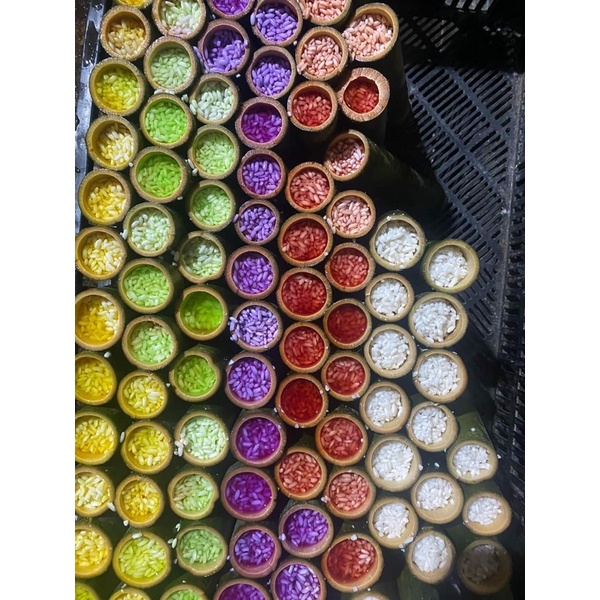 #CƠM_LAM_NGŨ_SẮC - Kèm muối vừng nhà làm ❗️❗️❗️ 💸🌾🍚🍙 set 5 ống cơm lam đã hút chân ko. 🍚 MÀU ĐỎ từ lá cẩm đỏ 🍙 MÀU TÍM từ LÁ CẨM 🍚 MÀU TRẮNG _ MÀU CƠM TRUYỀN THỐNG 🍙 MÀU VÀNG từ NGHỆ 🍚 MÀU XANH từ LÁ DỨA 🌿Nguyên liệu hoàn toàn tự nhiên 😍😍😍😍 😋 Khi ăn chỉ cần hấp