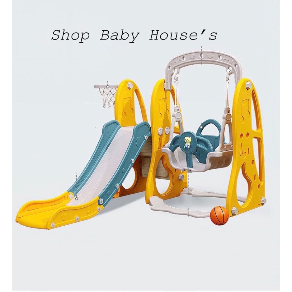 Cầu trượt xích đu cho bé cao cấp 4 trong 1 tặng kèm bóng rổ phù hợp trẻ em 2 - 8 tuổi