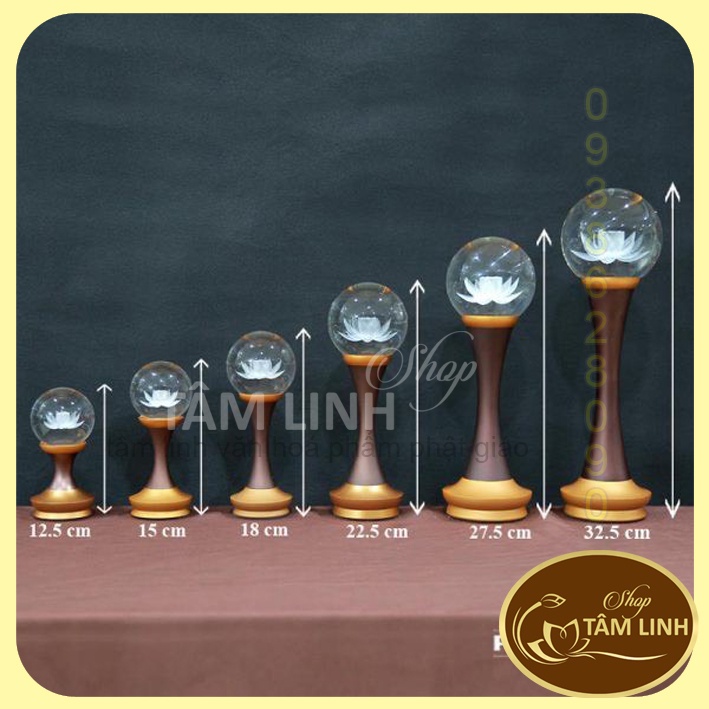 Cặp đèn thờ cúng quả cầu hoa sen 3d đổi màu-đèn bàn thờ quả cầu pha lê cao 21cm